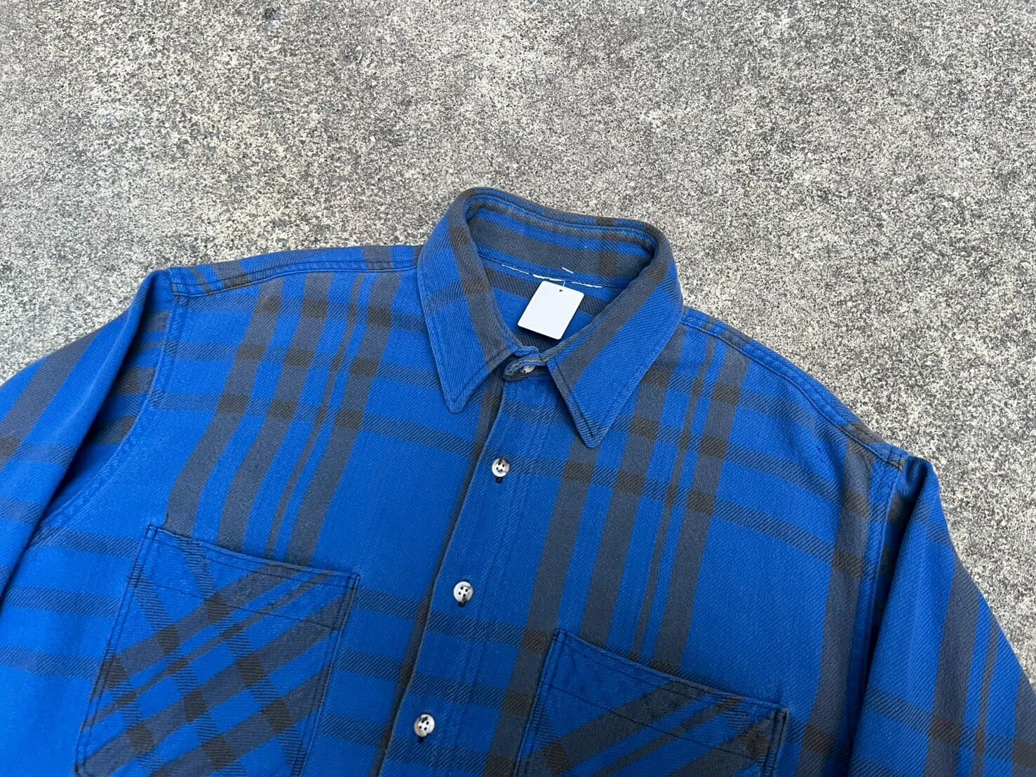 80s 90s UNKNOWN flannel shirt fade black blue アンノウンネルシャツフェード青黒