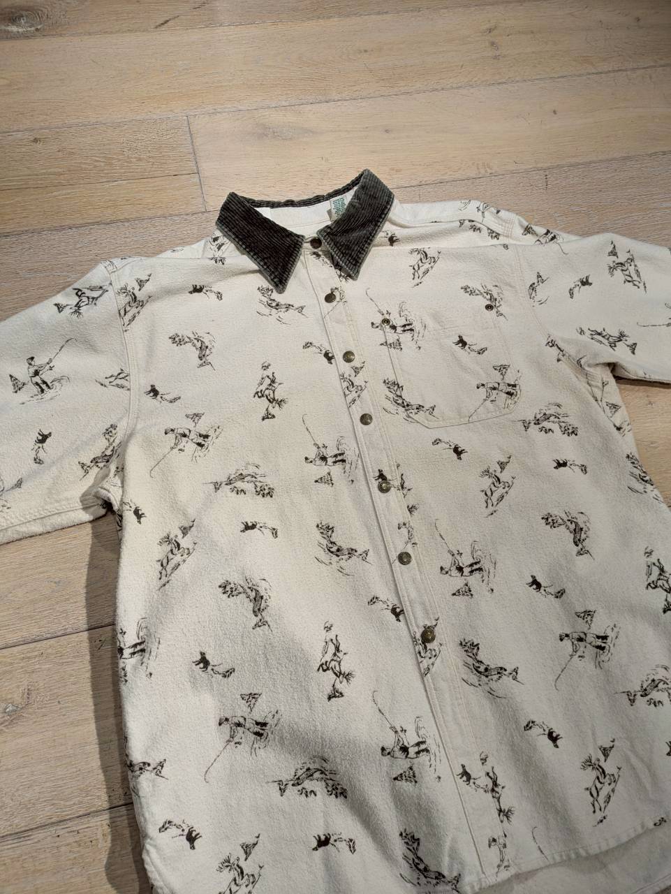90s L.L.Bean Outdoor Sportsman Hunting Print Corduroy / 90年代 エルエルビーン アウトドア スポーツマン ハンティング プリント シャモア ネルシャツ 襟コーデュロイ