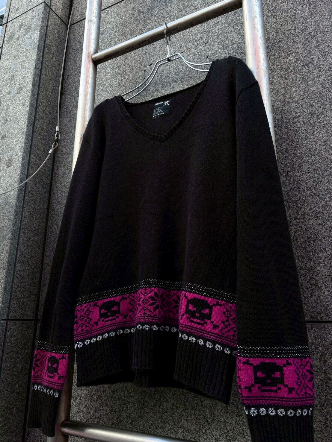 00s PPFM skull lame design y2k vneck wool knit/00年代 PPFM スカル&ラメ デザイン y2k Vネック ウールニット