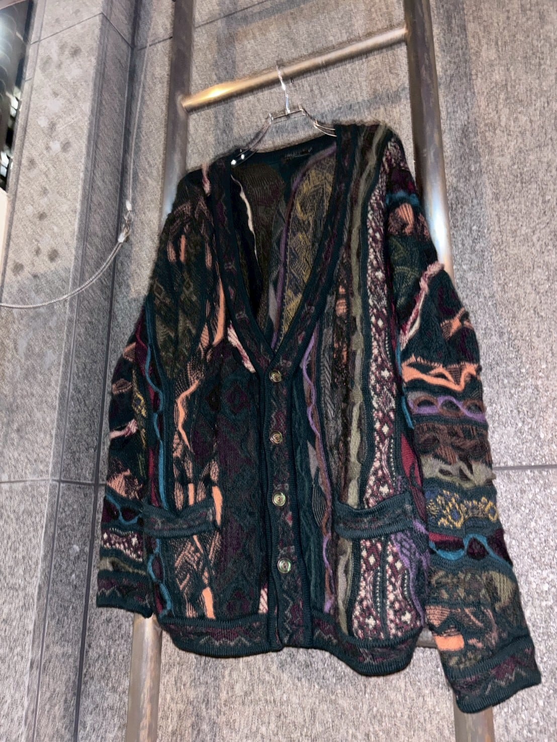 90s COOGI 3D design multi color wool knit cardigan/90年代 クージー 3D 立体 デザイン マルチカラー ウールニット カーディガン