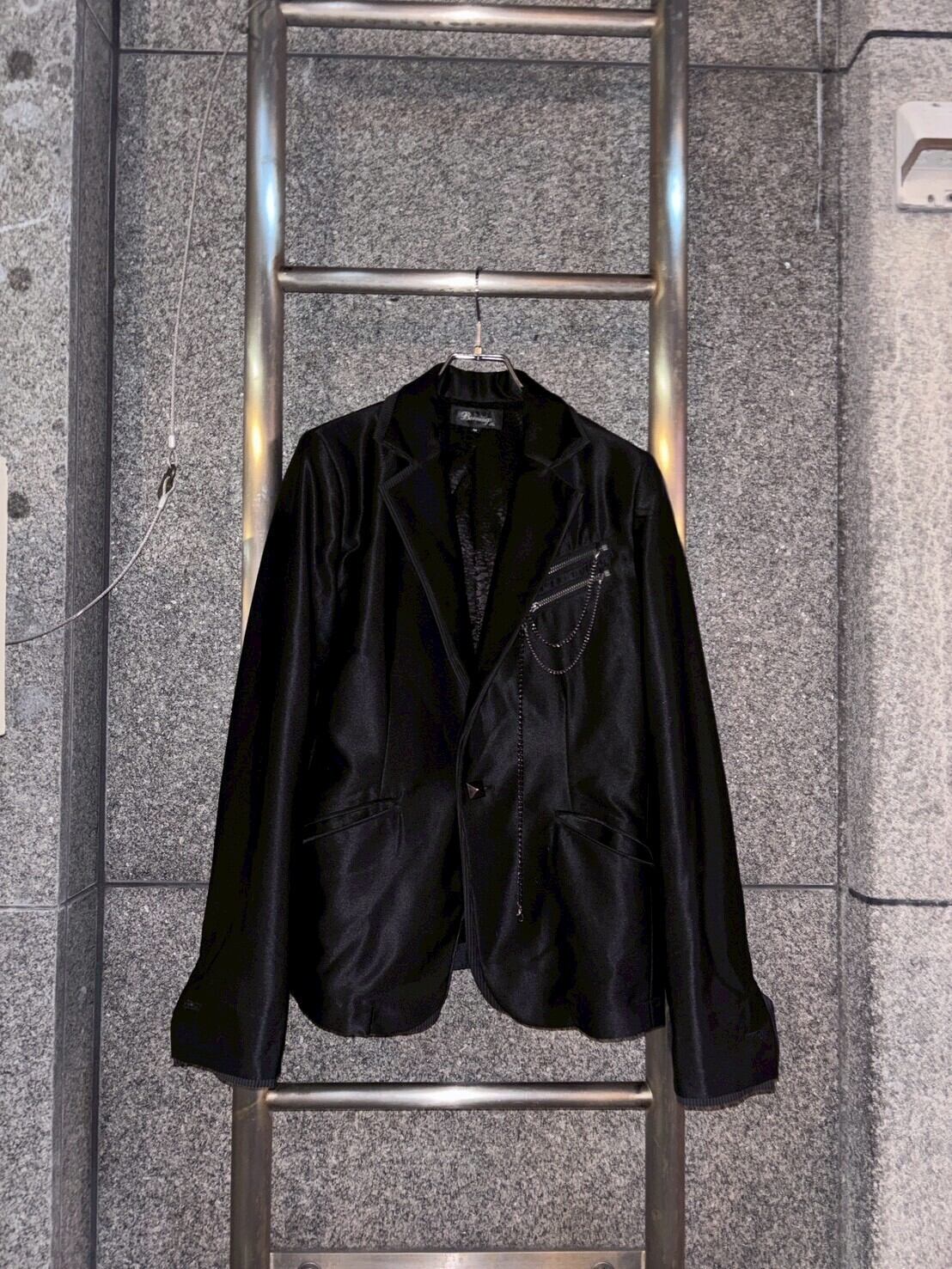 00s Burnings Sho chaindesign phython pattern y2k docking single tailored jacket/00年代 バーニングショー チェーンデザイン パイソン柄 y2k ドッキング シングル テーラードジャケット