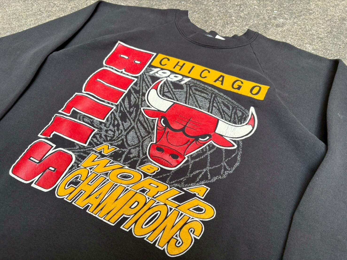 90s NBA “CHICAGO BULLS”1991 World champions raglan sleeve sweat shirt/90年代 nba シカゴ ブルズ 1991年 ワールドチャンピオンラグランスリーブ スウェットシャツ