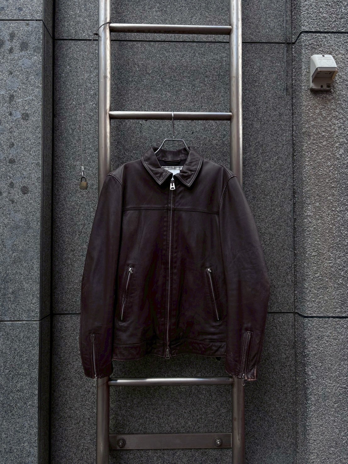 00s KATHARINE HAMNETT lamb leather wzip single riders jacket/00年代 キャサリンハムネット ラムレザー ダブルジップ シングルライダース ジャケット