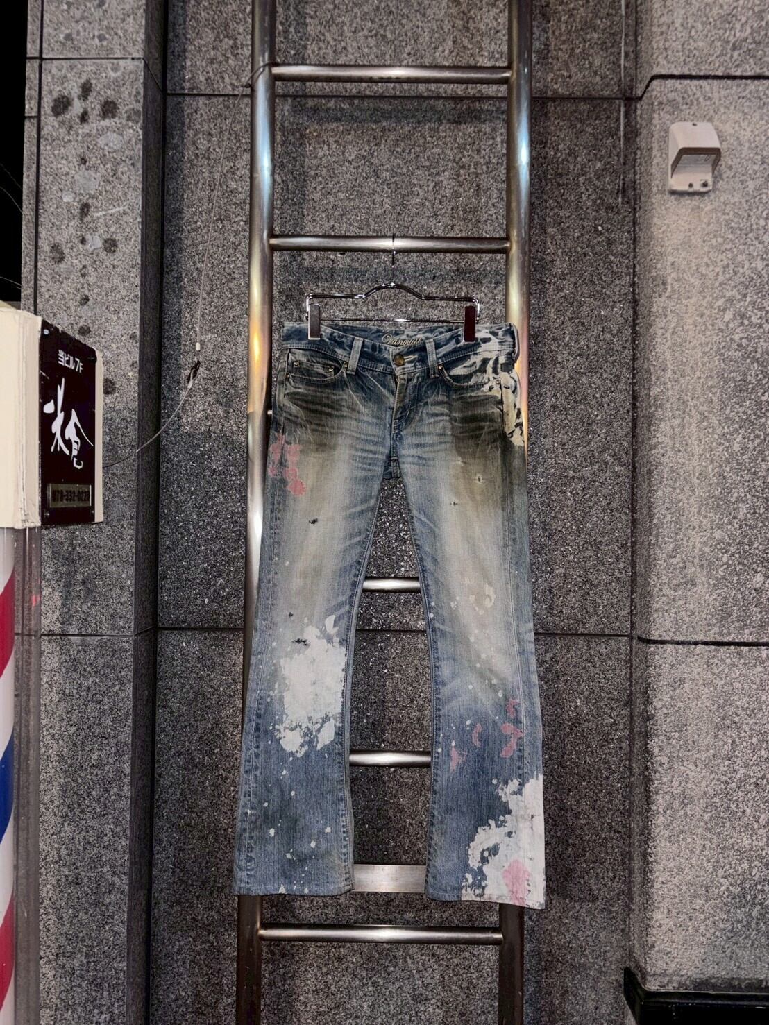 00s VANQUISH y2k darty design paint lowries shoocut denim/00年代 ヴァンキッシュ ダーティ ペイント加工 ローライズ シューカット デニム
