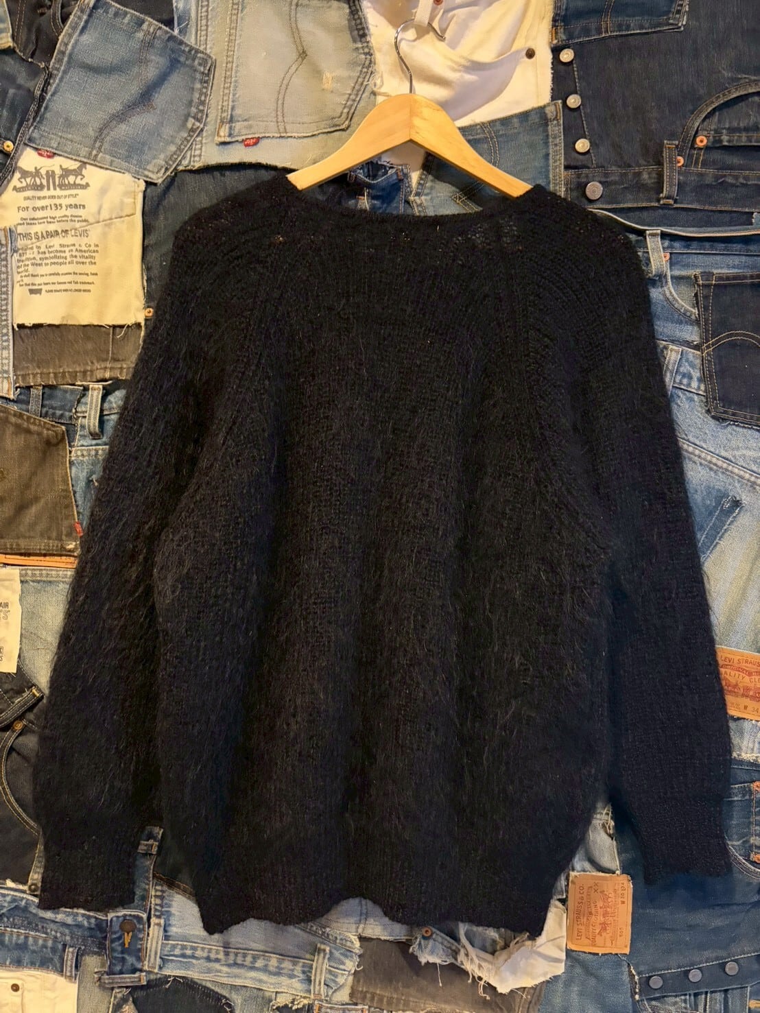 ・レディース合わせですが、モヘアカーディガンがこの値段は破格かと、現行のブランドと合わせる綺麗なコーデはもちろんのことVintageで合わせるスタイルも乙かと、60年代のモヘアは手の届きにくい値段になっており、ブラックとなるとトンデモ価格になります。それに比べ日常で使いやすく、シックに決まってかっこいいアイテムです。ぜひ!