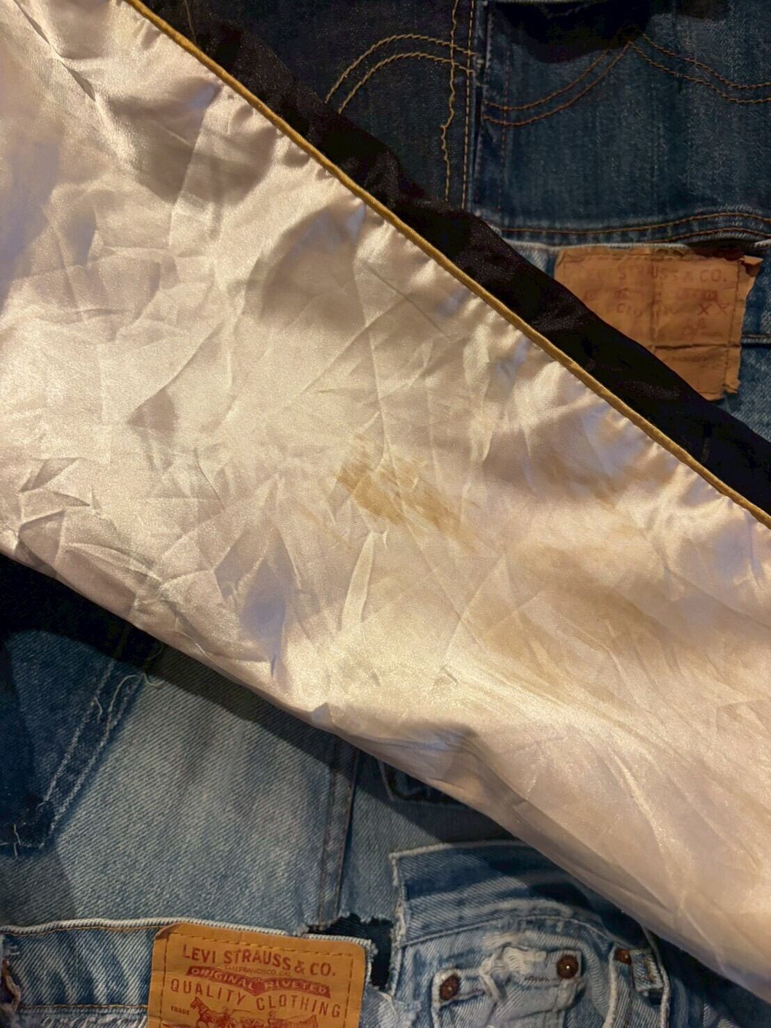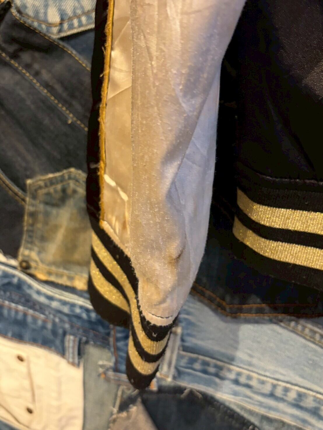 ・フロント下部にほつれ、両袖先に汚れ、両肘付近汚れ。