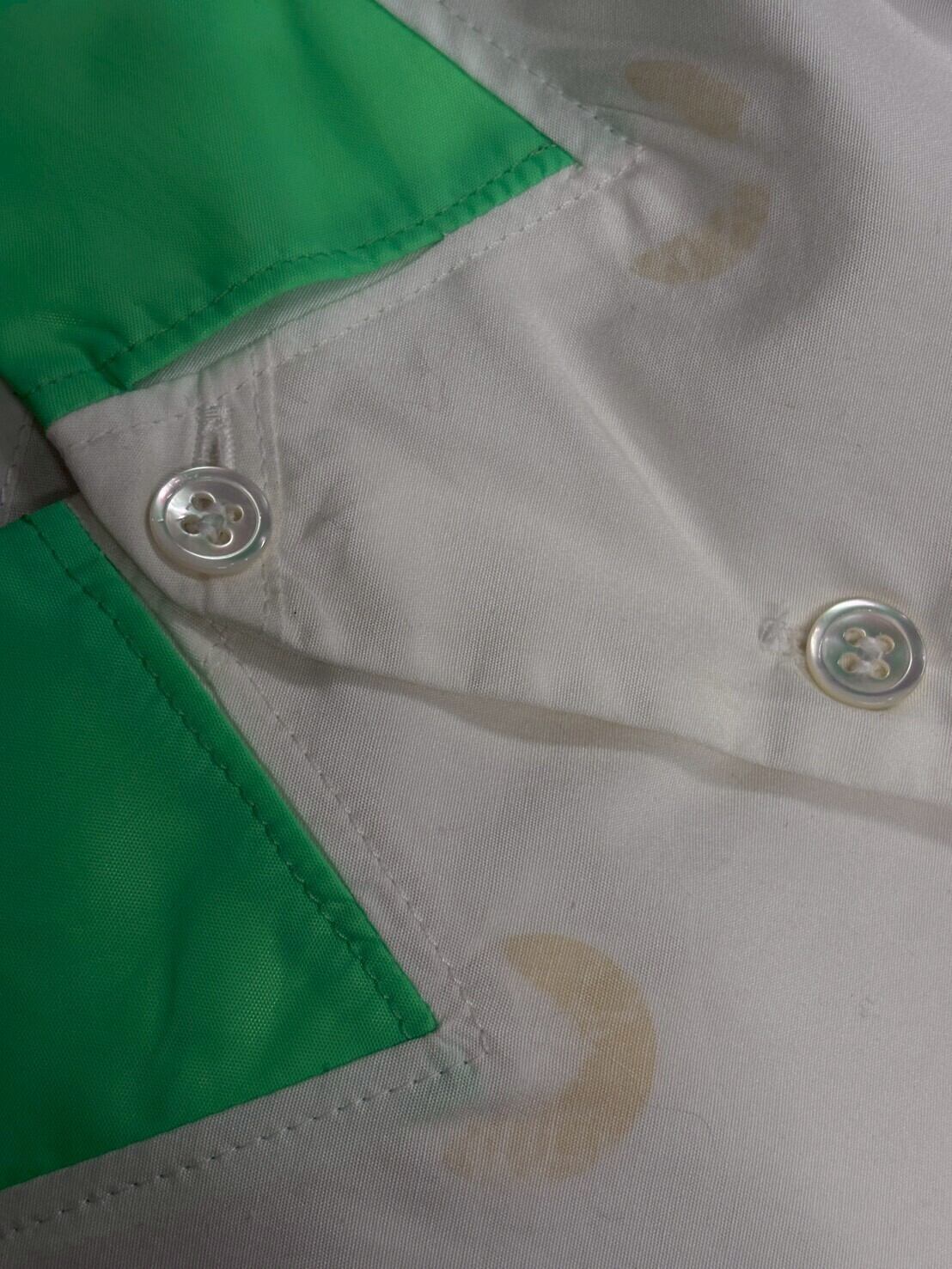 襟内側の留め具部分が劣化しており、シミのようになっています。
