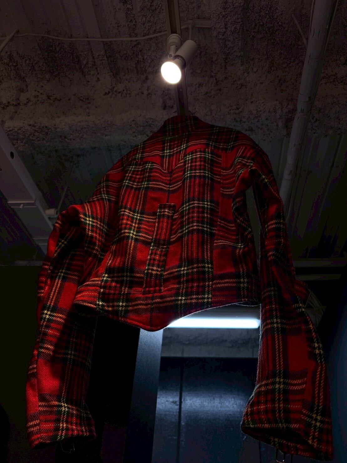 90s 666 made in British tartan check bondage jacket/90年代 666 イギリス製 タータンチェック ボンテージ ウール ジャケット