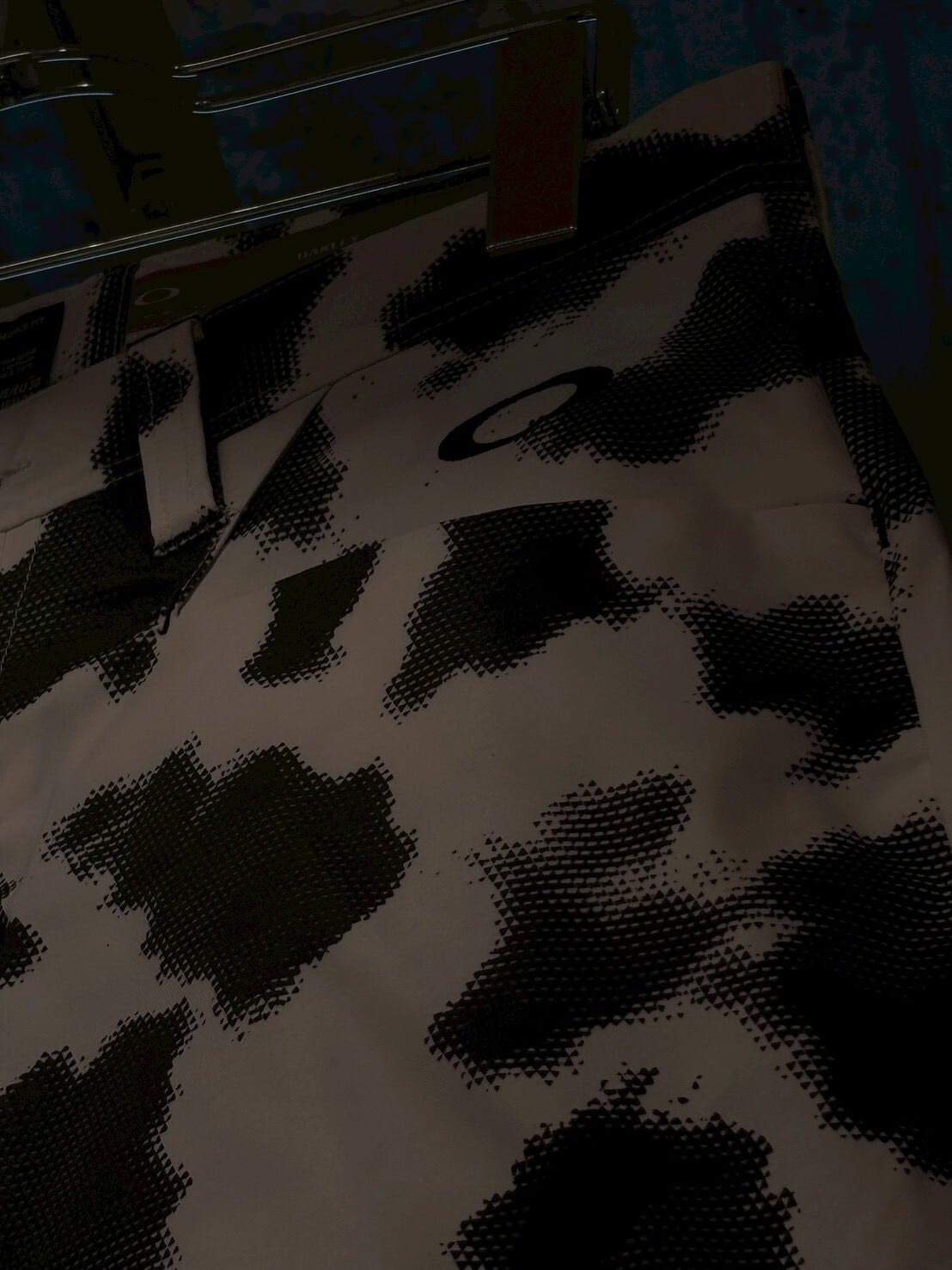 00s OAKLEY holstein pattern draping flare pants/2000年代 オークリー ホルスタイン 牛柄 立体裁断 フレア パンツ